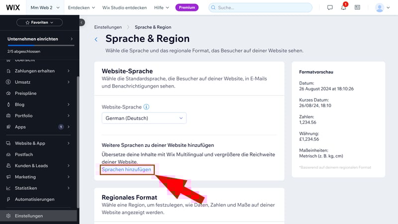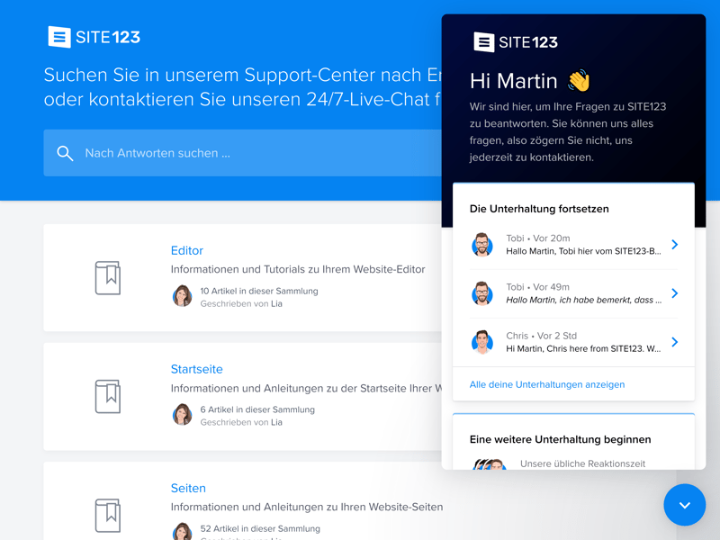 Wünschenswert ist eine integrierte Funktion, mit der Sie mehrere Sprachversionen Ihrer Website erstellen, zwischen denen Ihre Website-Besucher dann ganz einfach per Mausklick wechseln können (etwa durch ein Dropdown-Menü). Wie das geht, zeigen beispielsweise Wix oder SITE123: