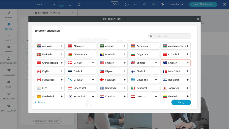 Auch mehrsprachige Websites sind mit den meisten Homepage-Baukästen möglich. Allerdings ist dies nicht bei jedem Anbieter gleich einfach.