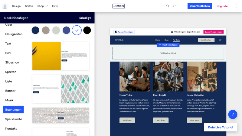 Grundlage jeder Baukasten-Website ist ein Design-Template. In den Template-Galerien der Anbieter können Sie die richtige Vorlage für Ihre Branche oder Ihren Anwendungsfall finden. - 3.