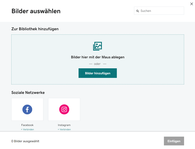 Die Bereichsvorlagen sind in Kategorien unterteilt und per Suchfunktion filterbar. Viele der wichtigsten Vorlagen-Typen – von „Über uns“-Bereichen und Bildergalerie bis zu Kontaktseiten, Produktgalerien und Speisekarten – werden abgedeckt.