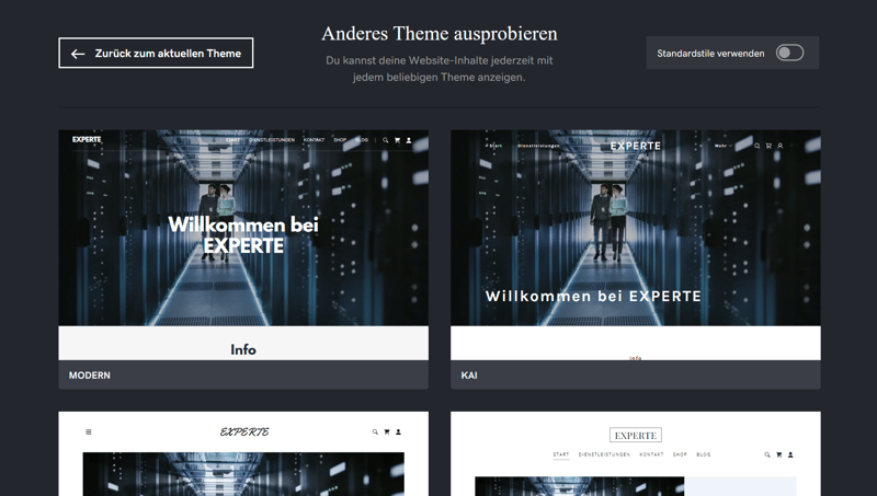 Sie können Ihr Theme jederzeit wechseln, allerdings stehen nicht immer alle Themes zur Auswahl.