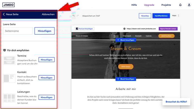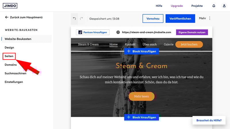 Passen Sie die Seiten und das Menü Ihrer Jimdo-Website an.