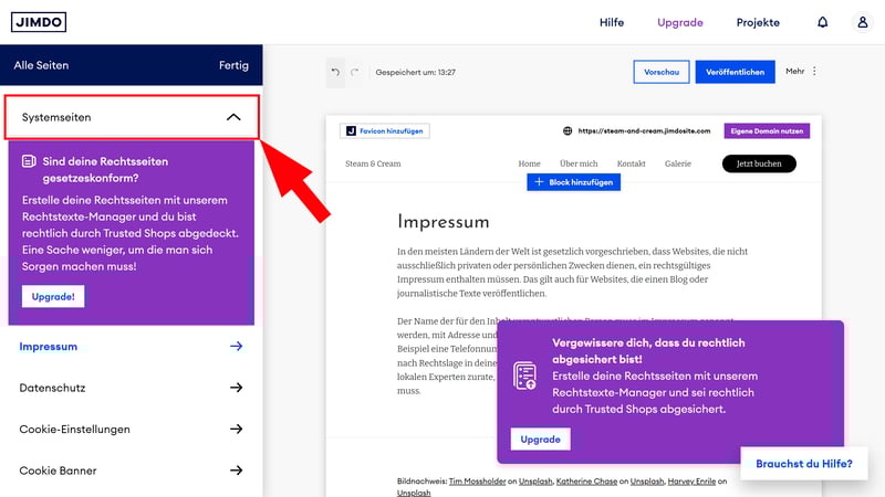 Systemseiten: Jimdo leistet rechtliche Hilfestellung