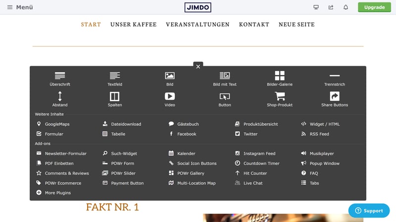 Der Baukasten von Jimdo ist logisch strukturiert und einfach zu bedienen.