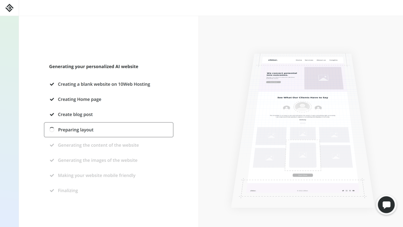 Wenn Sie alle Angaben gemacht haben, macht sich 10Web an die Arbeit: