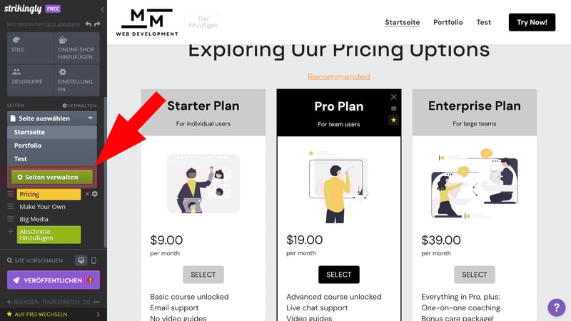 Sie können Ihrer Website mit wenigen Klicks neue Seiten hinzufügen.