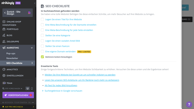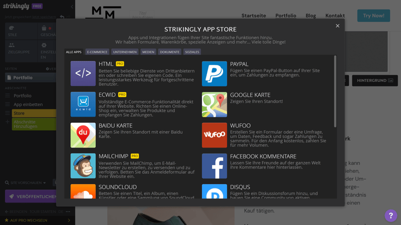 Natürlich hat Strikingly noch viele weitere Funktionen, die wir bisher nicht oder nur beiläufig erwähnt haben: