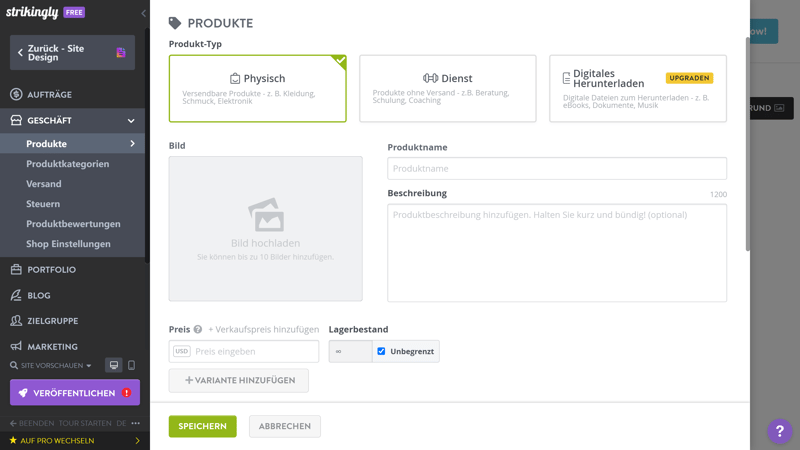 E-Commerce-Funktionen sind in allen Strikingly-Tarifen dabei – doch weil Sie im Limited-Tarif nur ein einziges Produkt hinzufügen können, nutzen wir auch hier den Pro-Tarif für unser Ranking. Jener ist im Vergleich zu den E-Commerce-Plänen vieler Konkurrenten aber recht günstig: