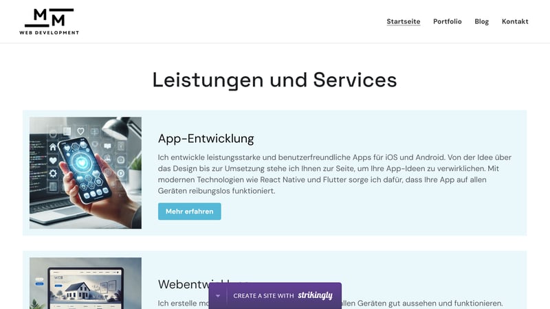 Für alle Baukästen aus unserem Vergleich erstellen wir eine Testseite mit denselben Inhalten. Unsere Strikingly-Testseite können Sie hier einsehen: Strikingly-Testseite