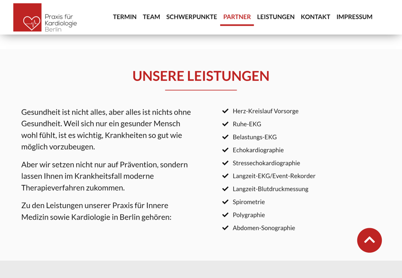 Diese Arztpraxis erklärt ihre Leistungen verständlich und übersichtlich. (Quelle: Praxis für Kardiologie Berlin)