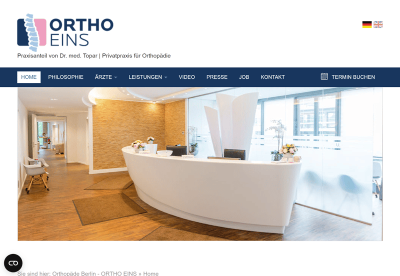 Diese Arztpraxis wirkt auf den ersten Blick vertrauenswürdig und modern. (Quelle: OrthoEins)