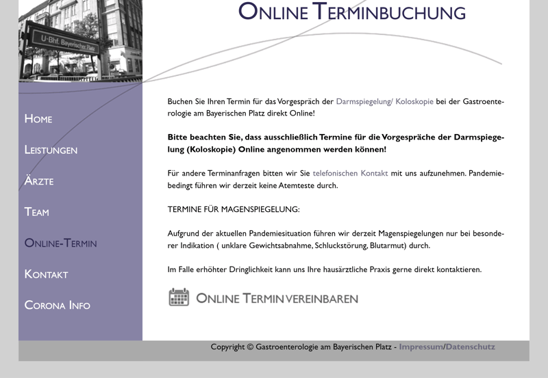 Binden Sie eine Online-Terminplanung ein, um Ihren Patienten (und Ihrem Team) die Planung zu erleichtern. (Quelle: Gastroenterologie am Bayerischen Platz)