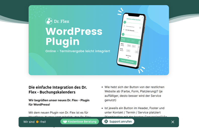 Eine bedienungsfreundliche Online-Terminvereinbarung spart Ihren Patienten Zeit und erleichtert Ihren Praxisalltag. Ist es nicht möglich, ein entsprechendes Plugin einzubauen, lässt sich eine solche Funktion über Portale wie Doctolib oder Jameda integrieren.