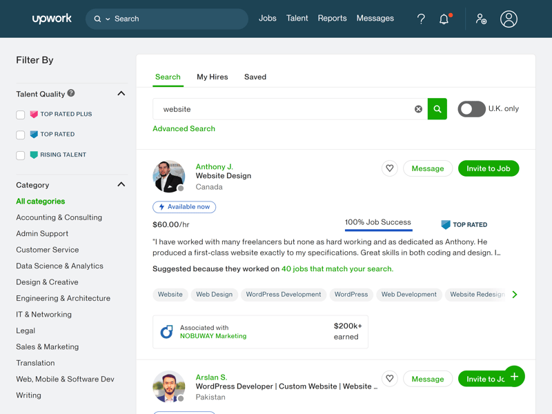 Auf Freelance-Plattformen wie Upwork können Sie Website-Experten für Ihr Projekt finden.