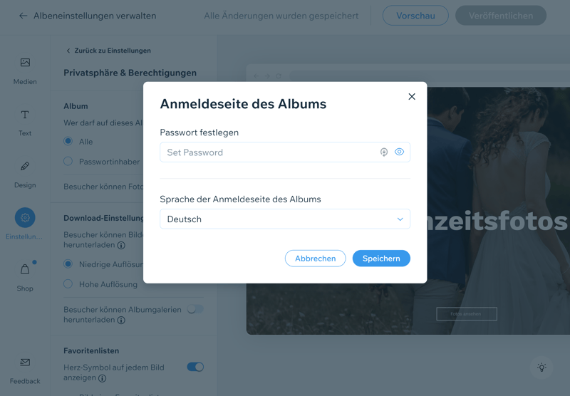 Sie können die Fotogalerie bei vielen Anbietern auch mit einem Passwort schützen, sodass nur autorisierte Menschen darauf zugreifen können.