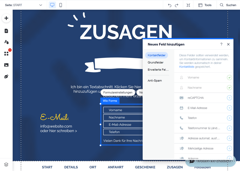Bei Anbietern wie Wix können Sie Antwortformulare individuell anpassen.