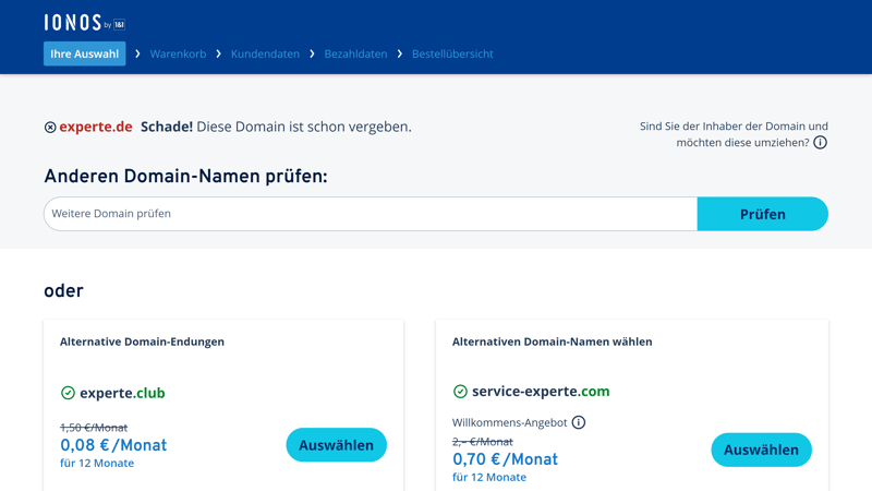 Bei den meisten Domain-Anbietern finden Sie die Domain-Suchfunktion gleich auf der Startseite.