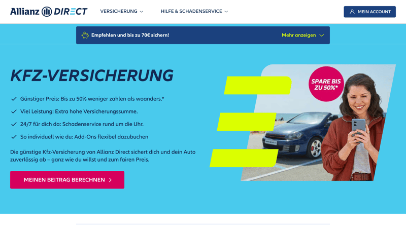 Das Versicherungsunternehmen Allianz fällt sofort mit der Tür ins Haus und jeder weiß, um was es geht. Der Content zeigt, welche Probleme das Unternehmen löst.