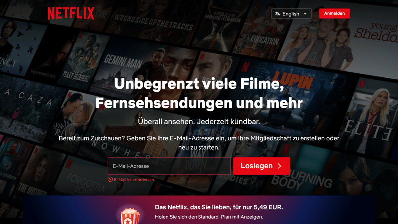 Bei Netflix weiß der Kunde gleich, um was es geht: klar, aufgeräumt, übersichtlich und ohne Ablenkung kommt der Video-on-Demand-Anbieter sofort zur Sache.