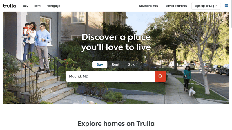 Trulla ist eine Immobilienseite, die mit dem Hero ihrer Landingpage sofort die Emotionen ihrer User anspricht.