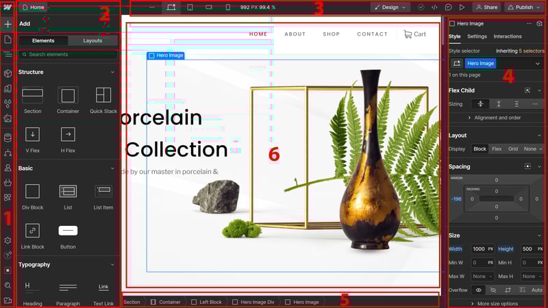 Der praktische Webflow-Editor visualisiert das Programmieren zwar, behält die Logik dahinter jedoch im Vordergrund, sodass man beispielsweise mit dem Box-Modell vertraut sein sollte, um die Funktionsweise zu begreifen.