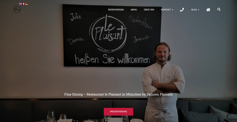 Zeigen Sie auf der Startseite Ihren Speisesaal, Ihre Gerichte oder das Team – oder alle drei. (Quelle: Le Plaisant)