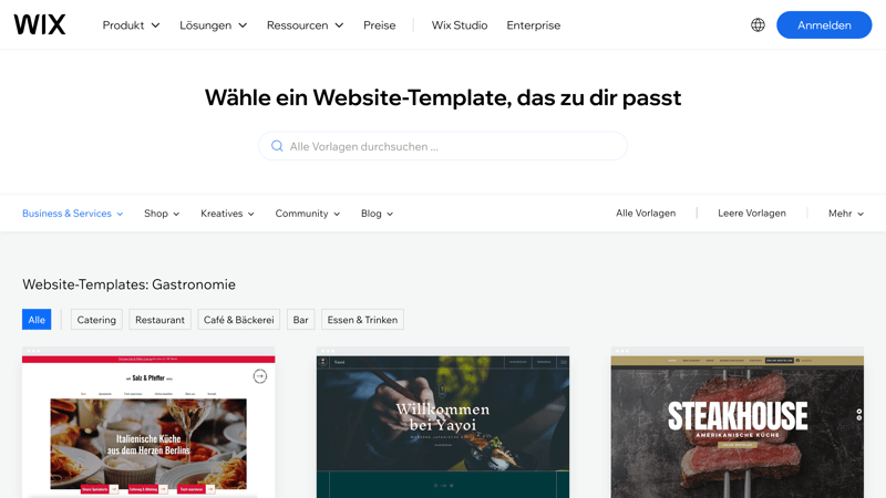 Wix hat mehrere Design-Templates für den Gastro-Bereich integriert.
