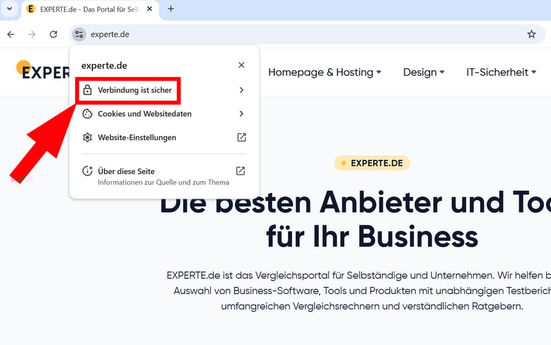 Die meisten modernen Browser zeigen bei gesicherten Verbindungen ein Symbol – in der Regel ein Schloss – links neben der URL an. Bei Chrome klicken Sie beispielsweise auf das Regler-Symbol neben der Adressleiste, um ein Pop-up-Fenster mit Verbindungsinformationen zu öffnen. Wenn die Verbindung sicher ist, sehen Sie ein Schloss und den Hinweis „Verbindung ist sicher“.