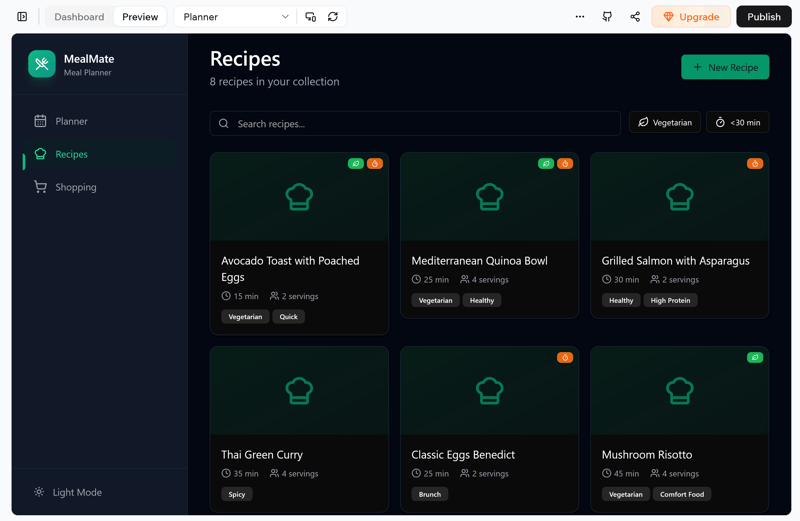 Ergebnis: MealMate bei Base44