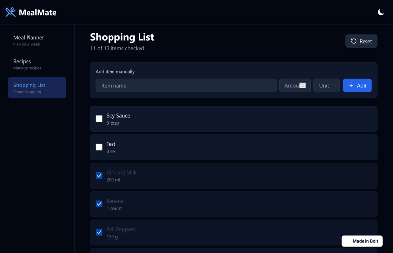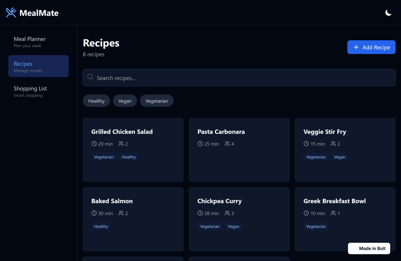 Ergebnis: MealMate bei Bolt.new
