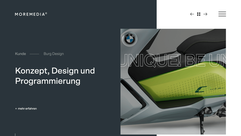 Die Webseite der Industriedesigner Maertens ist komplett auf den Dark Mode ausgerichtet.