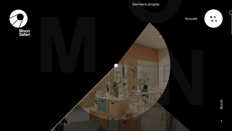 Das Architekturbüro Moon Safari spielt mit den Schatteneffekten im Dunkelmodus und erzeugt damit Spannung und Atmosphäre.