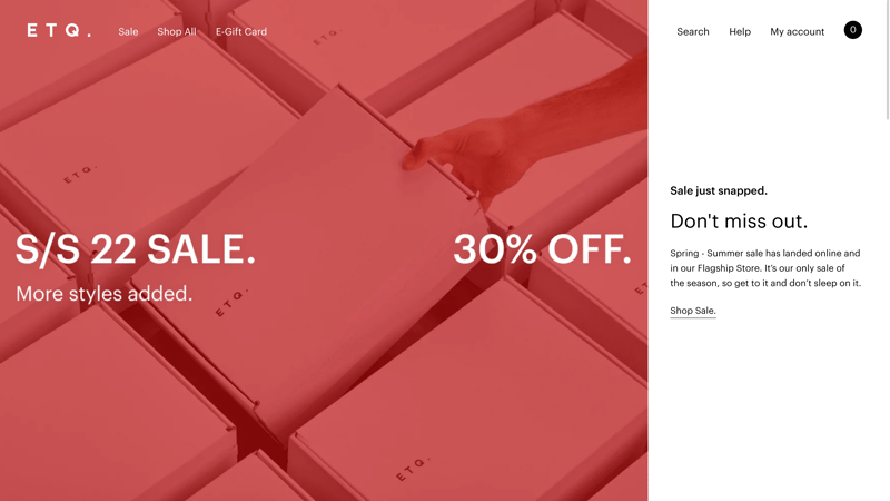 Klar, ohne Schnörkel, mit akzentuierter Farbe präsentiert die Firma ETQ ihre Schuhe im Katalogstil.