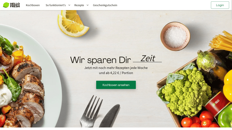 Klar, aufgeräumt, übersichtlich: Auf den ersten Blick erkennen Nutzer, um was es auf den Seiten von Hellofresh geht. Und mit nur einem Klick kommen sie zum Bestellvorgang.