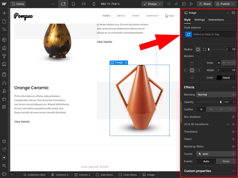 Bei Webflow haben Sie umfassende Kontrolle über jedes Designelement. Im Website-Editor programmieren Sie Ihre Inhalte visuell und können fast alles umsetzen, was auch mit „richtigem“ Code möglich wäre.Mix aus CMS und Homepage-Baukasten