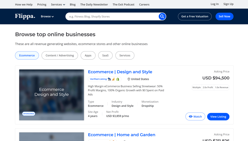 Mehr als 12.000 erfolgreich verkaufte Websites pro Jahr machen Flippa zu einem der weltweit größten Online-Marktplätze. Egal ob Blog, SaaS-Firma, Online-Shop oder Social Media-Account: Bei Flippa lässt sich so ziemlich jedes digitale Asset verkaufen.