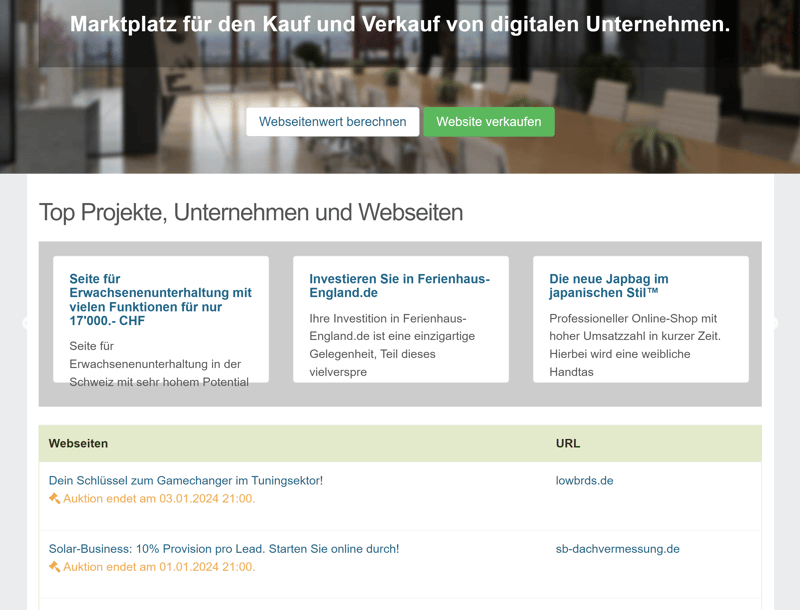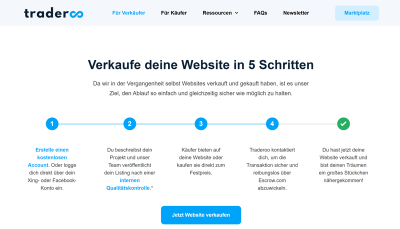 Sie möchten Ihre Website lieber auf einer Plattform verkaufen, die speziell den deutschen Markt bedient? Dann ist Traderoo einen Blick wert: Hier können Sie Website-Projekte jeder Art zum Verkauf stellen.