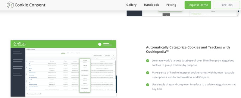 Das bei OneTrust als OneTrust Cookie Consent bezeichnete Cookie Consent-Tool entspricht ebenfalls den DSGVO- sowie den CCPA-Richtlinien. Außerdem benennt OneTrust explizit, dass es auch die Anforderungen des Bundesdatenschutzgesetzes erfüllt. Darüber hinaus ist es mit OneTrust Cookie Consent möglich, auch mit LGPD, dem brasilianischen Datenschutzgesetz, konform zu gehen. Wie Osano und Quantcast Choice erfüllt auch OneTrust den europäischen Industriestandard TCF 2.0.