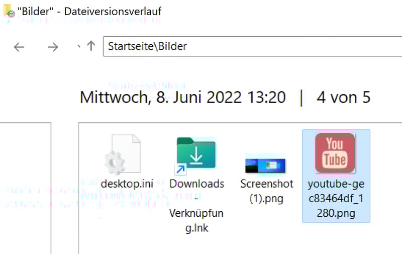 Der Unterordner Bilder enthält die verschollene YouTube-Stock-Grafik.