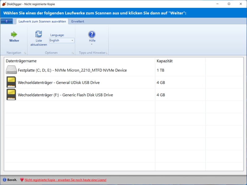 Installieren Sie auf jeden Fall einen Datenretter auf Ihrem PC oder einem Stick. So sind Sie jederzeit handlungsfähig, wenn es doch mal zu Datenverlust kommt.