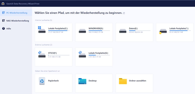 Mit EaseUS Data Recovery Wizard haben Sie die Möglichkeit, gelöschte Dateien von Festplatten, SSDs, USB-Sticks, Speicherkarten & Co. wiederherzustellen. Es spielt dabei keine Rolle, ob sie mit NTFS oder FAT formatiert sind.