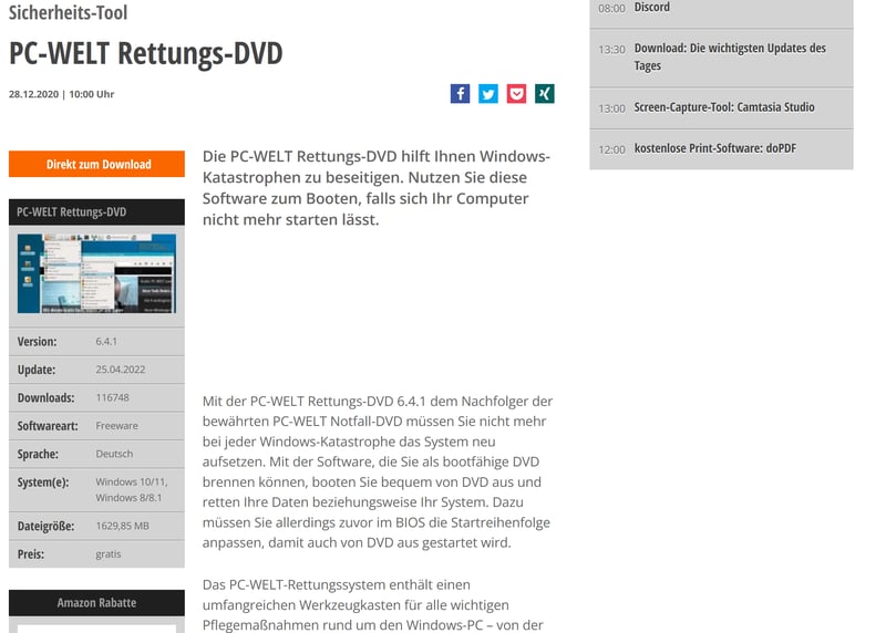 Die PC-Welt-Rettungs-DVD können Sie kostenlos downloaden.