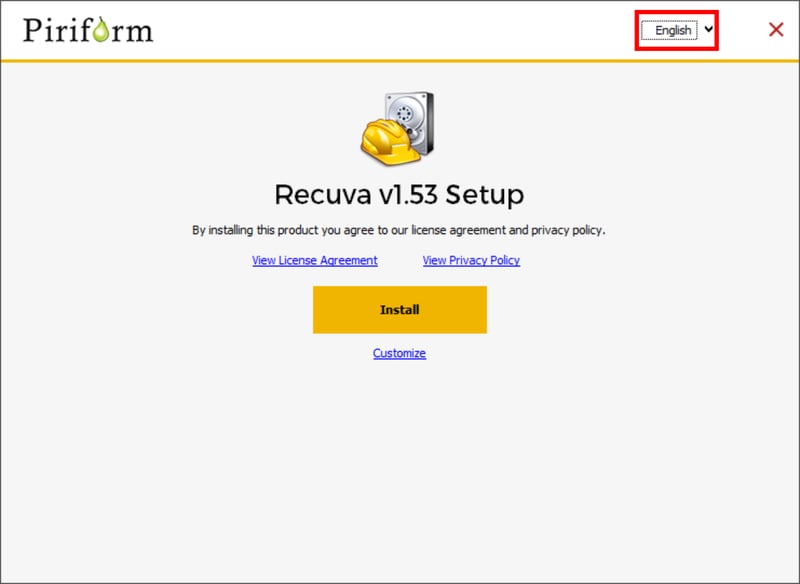Recuva wird standardmäßig auf Englisch installiert. Wenn Sie die Sprache auf Deutsch oder eine andere Sprache ändern wollen, dann können Sie das bei der Installationsvariante direkt im Startfenster des Installationsassistenten einstellen: