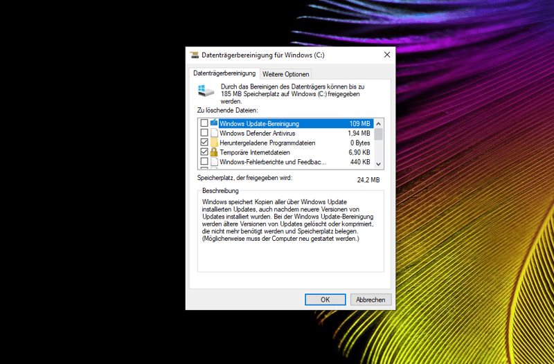 Die Datenträgerbereinigung unterstützt Sie beim Entfernen von Datenmüll.