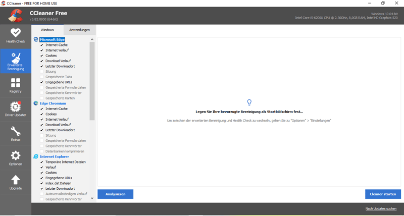 Mit dem CCleaner lässt sich die Bereinigung individuell anpassen oder mit den Standardeinstellungen durchführen.