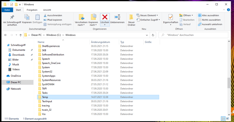 Im Temp-Ordner finden Sie temporäre Dateien und können diese löschen.