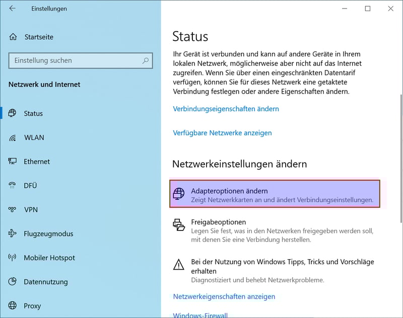 Klicken Sie zunächst auf Adapteroptionen ändern.