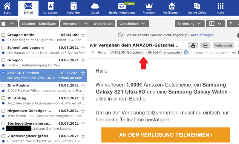 Nehmen Sie sich vor Phishing-E-Mails in Acht.