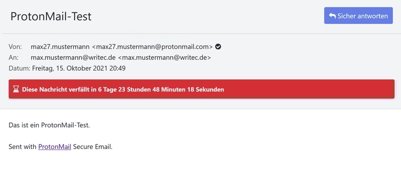 Sie können das Verfallsdatum Ihrer verschlüsselten E-Mails selbst festlegen.