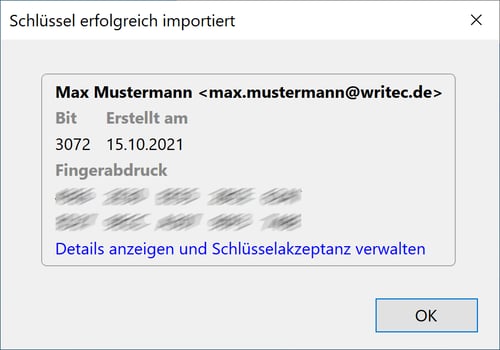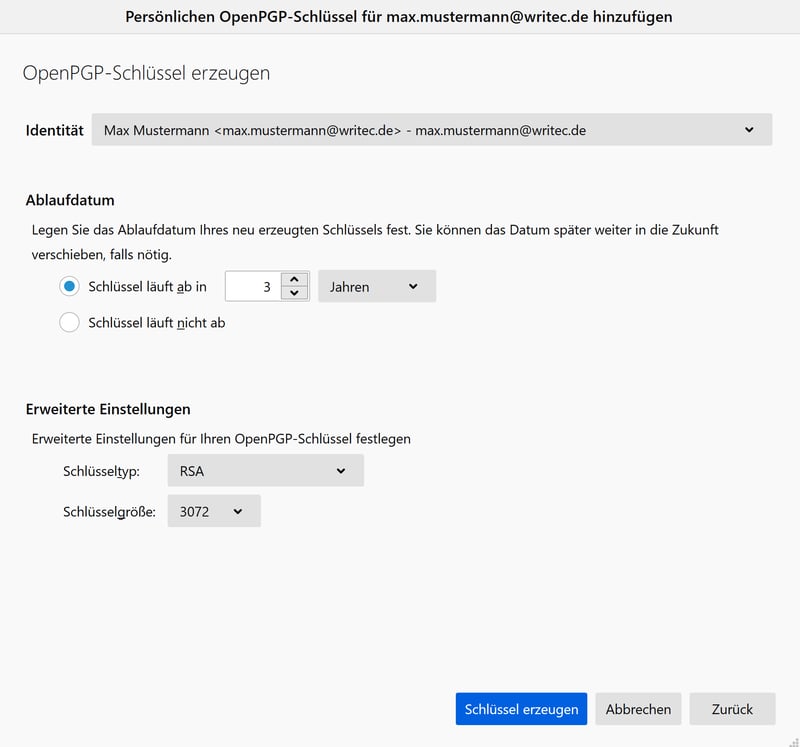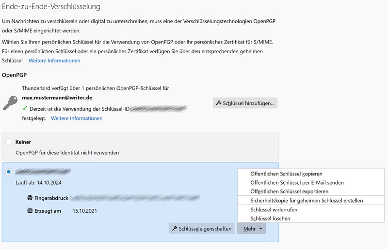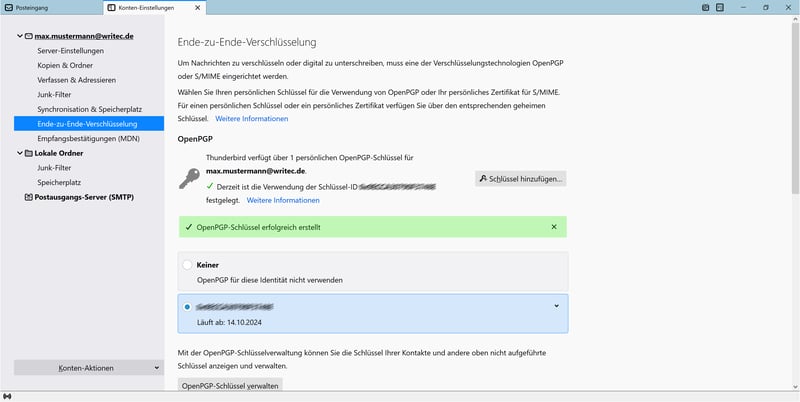 Die Einrichtung ist nun komplett und Sie können OpenPGP verwenden.